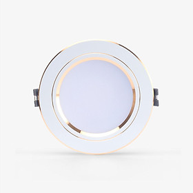 Đèn LED Âm trần Downlight 110/9W Viền Vàng Model: AT10 110/9W (G) Công suất: 9W Điện áp: 220V/50-60Hz Quang thông: 900lm Nhiệt độ màu: 6500K/3000K Kích thước (ØxH): (138x36)mm ĐK lỗ khoét trần: 110mm Sử