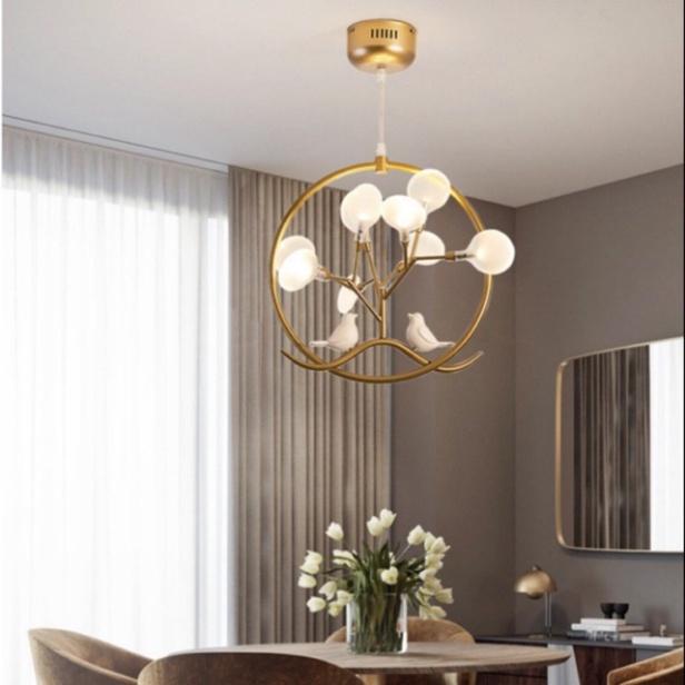 Đèn thả bàn ăn hiện đại trang trí bếp kiểu thả trần mạ vàng gồm 8 bóng đèn cao cấp bảo hành 24 tháng Đèn thả bàn ăn hiện đại sẽ làm nổi bật lên