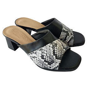 - Dép nữ cao gót quai ngang một bản TRường Hải màu đen gót vuông 8cm da mềm DN139 thiết kế với kiểu dáng ôm chân, thon gọn, thoải mái di chuyển mà không lo