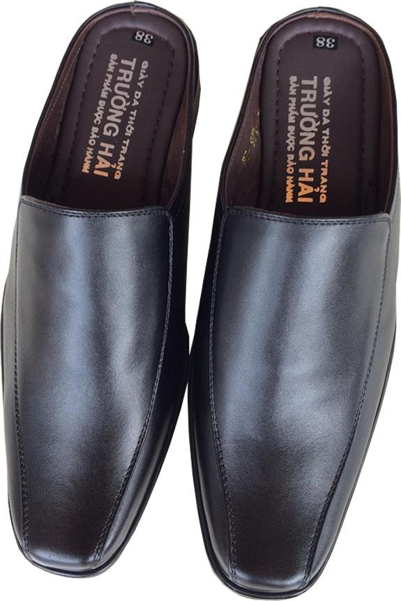 ✨Dép nam bít mũi da bò Trường Hải màu đen đế cao 3.5cm HÌNH ẢNH THẬT