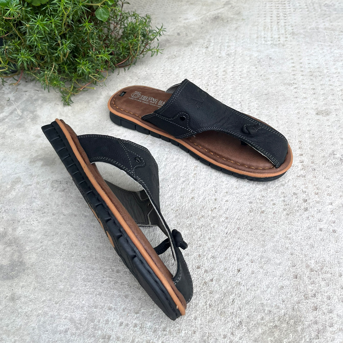 Dép nam bít mũi Trường Hải da bò thật