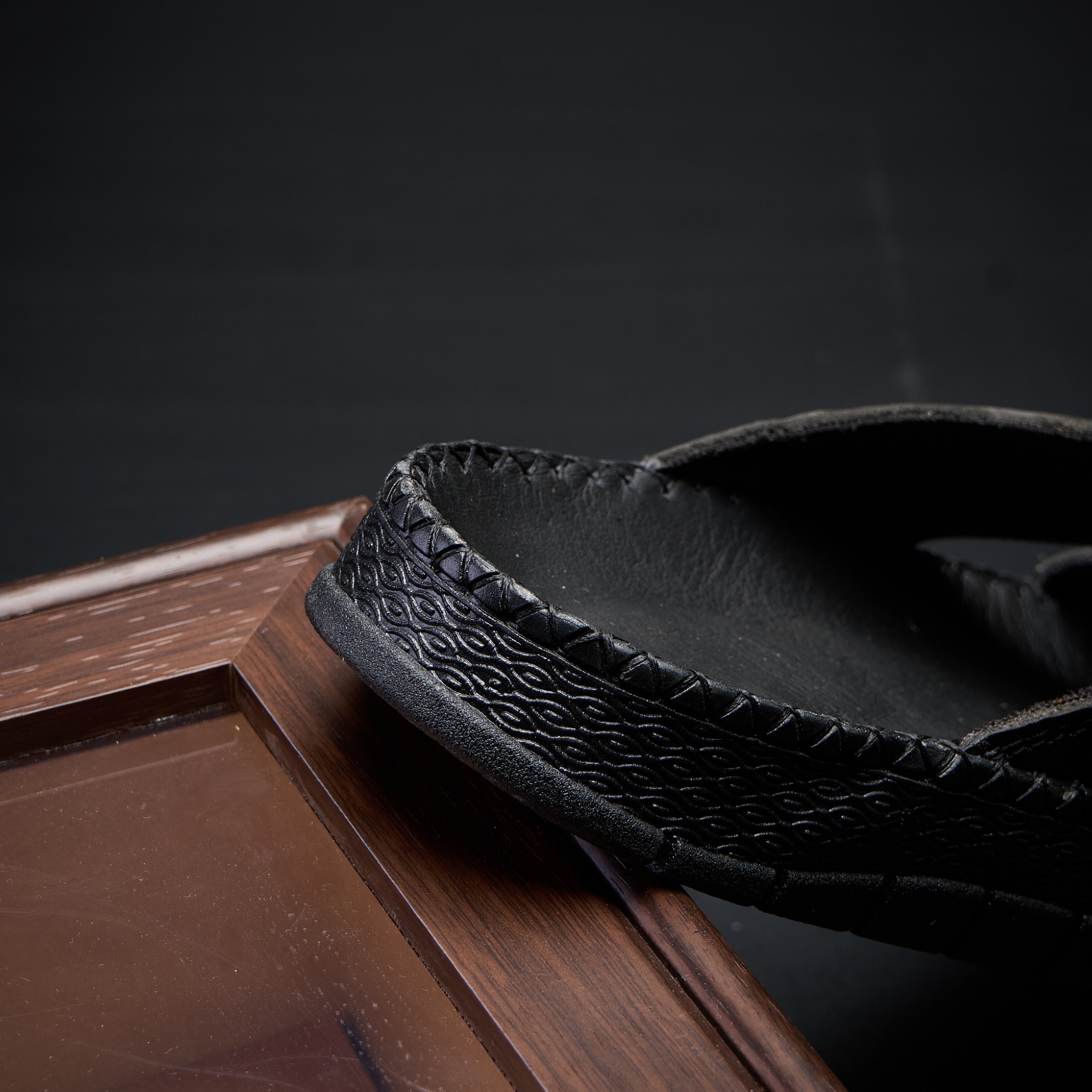 - Chất liệu quai: da bò - Chất liệu đế: PU nguyên khối cao cấp Đế dép gồm 2 phần: + Phần tiếp xúc với bàn chân làm bằng PU nguyên khối cao cấp êm
