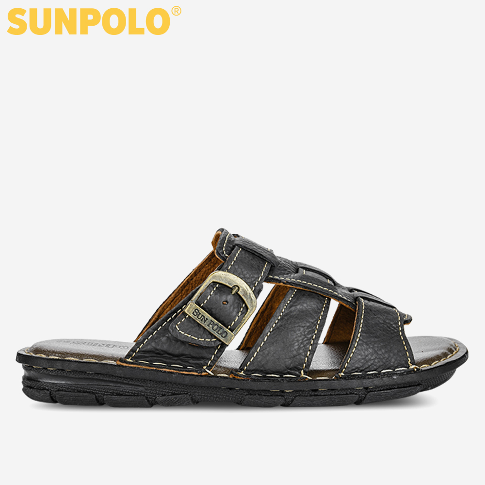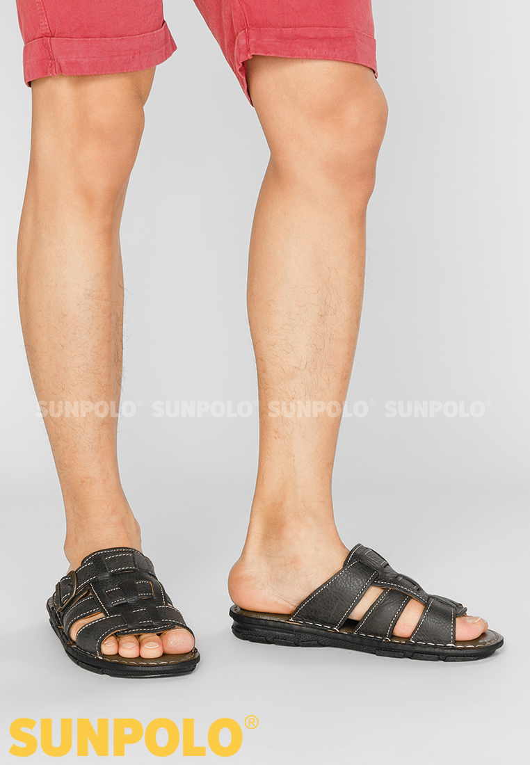 ✨Dép nam quai ngang da bò cao cấp SUNPOLO AQN001 phiên bản đen