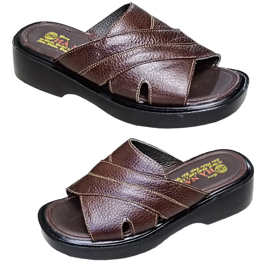 ✨Dép Nam Quai Ngang Da Bò Thật HÀ NAM Đế Cao Dành Cho Người Thấp DN2041