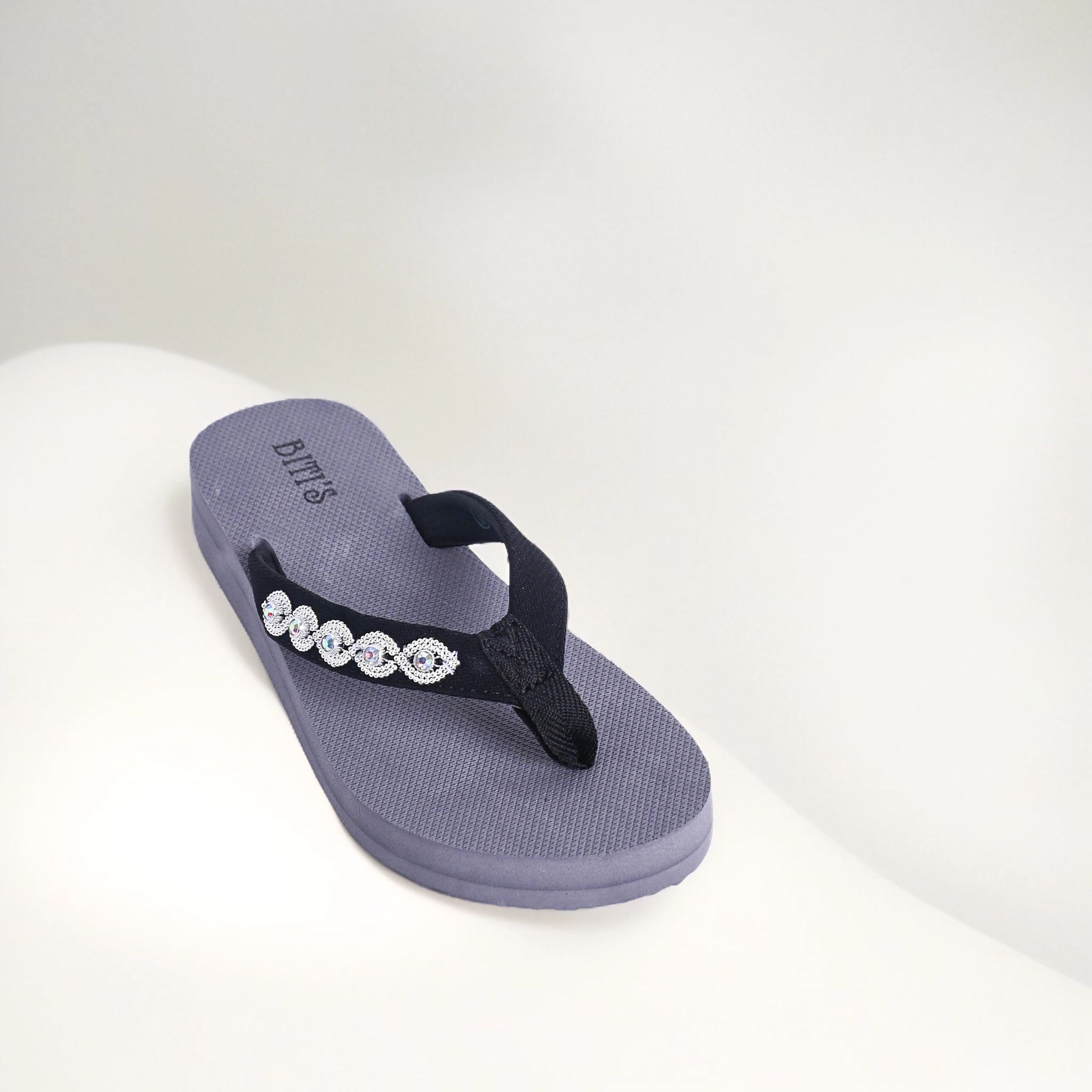 Đế xám quai đen đính đá(B)