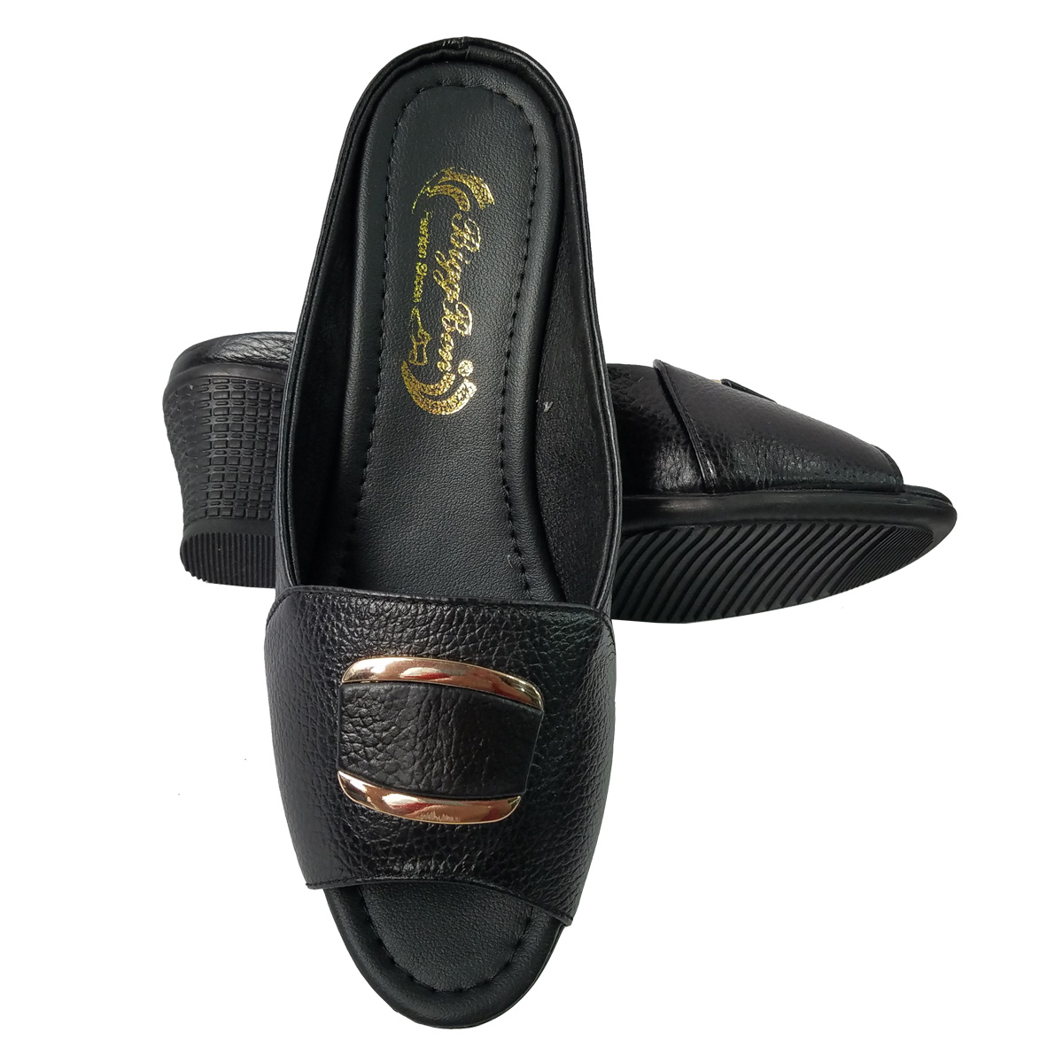 Giày Sục Nữ Giày Đế Xuồng Da Bò Thật Cực Mềm Gót Cao 5cm Evelynv 5P1816 (Đen)
