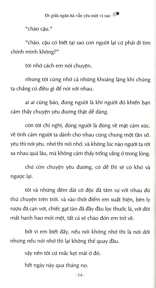 Đi Giữa Ngân Hà Vẫn Yêu Một Vì Sao Phải chăng tất cả những tình cảm trong sáng mãnh liệt đều xuất phát từ nỗi cô đơn sâu thẳm bên trong nội tâm của