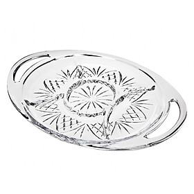 Hãng Godinger luôn cho ra đời những sản phẩm pha lê vô cùng chất lượng, tinh tế. Đĩa pha lê bầu dục có tay cầm Godinger Dublin được làm bằng chất liệu là pha lê không chì, có độ bền cao, cầm nặng tay và sử dụng công nghệ chống vỡ, xước và rạn nứt hiệu quả. Sản phẩm được thiết kế gắn liền với một bát nhỏ ở giữa để đựng gia vị chấm dùng, lý tưởng để đựng hoa quả, các món ăn tại nhà bếp, phòng khách, phục vụ tại bàn ăn, bàn tiệc.