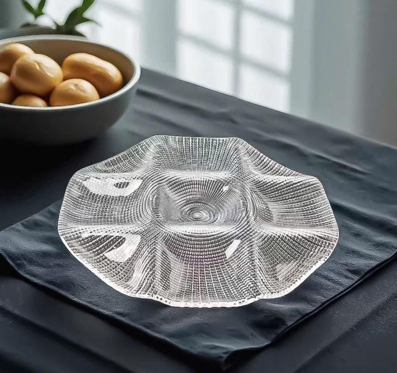 Đĩa hoa quả pha lê đúc là món đồ nội thất có thể trang trí bàn phòng khách, phòng ăn; Có thể đựng trái cây, bánh kẹo để không gian sống trở nên lung linh