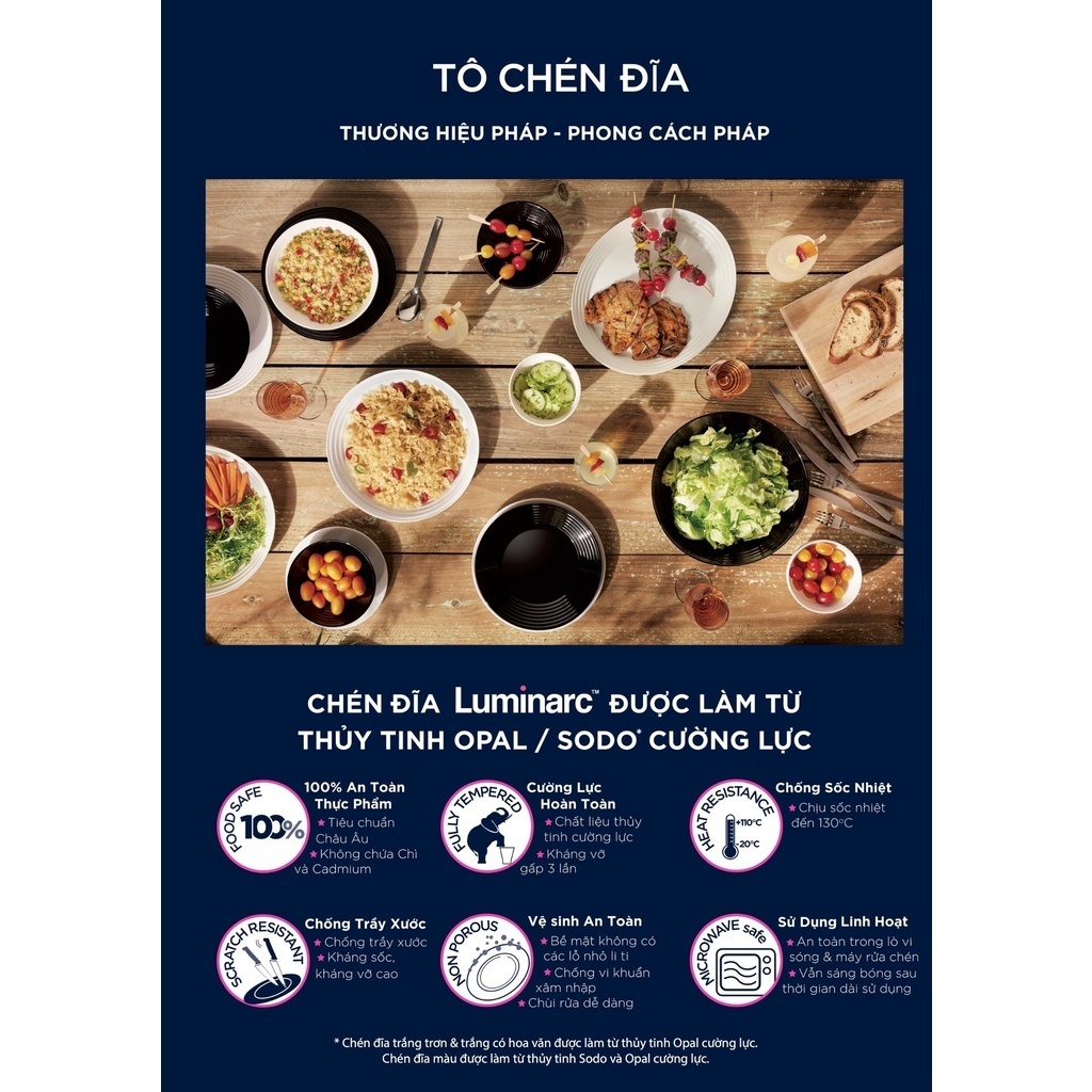 - Quy cách : 6 Cái/ bộ - Kích thước: 20 cm - Chất liệu: Thuỷ tinh opal, cường lực, kháng vỡ - Xuất xứ: Pháp - Đặc tính nổi bật: cường lực, kháng vỡ