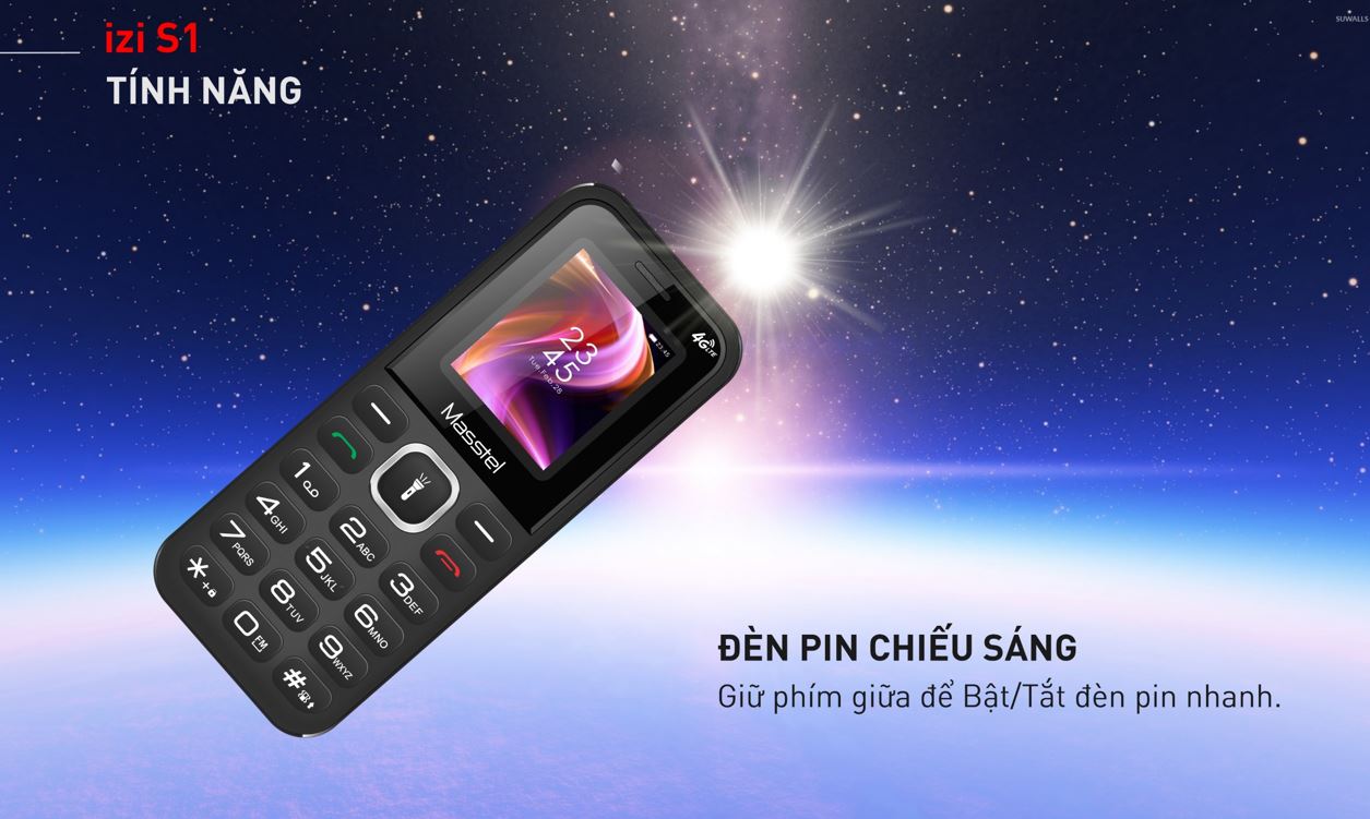 Cạnh trên Masstel IZI S1 4G được bố trí đèn pin siêu sáng, chỉ cần giữ phím “0” để bật/tắt nhanh đèn pin, giúp người dùng có thể dễ dàng nhìn rõ hơn trong đêm tối.