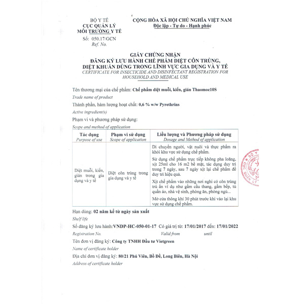 Mua tại Tiktok- Thảo Mộc 10S Diệt Công Trùng là chế phẩm sinh học được sản xuất theo công nghệ chưng cất tinh dầu thảo mộc tự nhiên 100%. Sản phẩm có tác dụng xua đuổi và diệt trừ mạnh mẽ các loại (côn trùng ): Muỗi, Kiến, Gián, Dĩn,Mối, Mọt, Ve, Giận, Bọ chét, sâu róm...