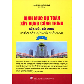 Mua tại Tiktokiới thiệu cuốn sách "Định Mức Dự Toán Xây Dựng Công Trình sửa đổi, bổ sung (Phần Xây Dựng và Khảo Sát). Theo Thông tư 09/2024/TT-BXD sửa đổi, bổ sung định mức xây dựng tại Thông tư 12/2021/TT-BXD. Ngày 30/8/2024 của Bộ trưởng Bộ Xây dựng ban hành. Tập 1 nội dung gồm 2 phần chính: Phần 1: Định mức dự toán Phần Xây Dựng Phần 2: Định mức dự toán Phần Khảo Sát. Sách dày 670 trang, khổ A4, bìa mềm. => Shop miễn phí vận chuyển, có xuất hóa đơn điện tử nhanh chóng. Trân trọng giới thiệu cùng bạn đọc!