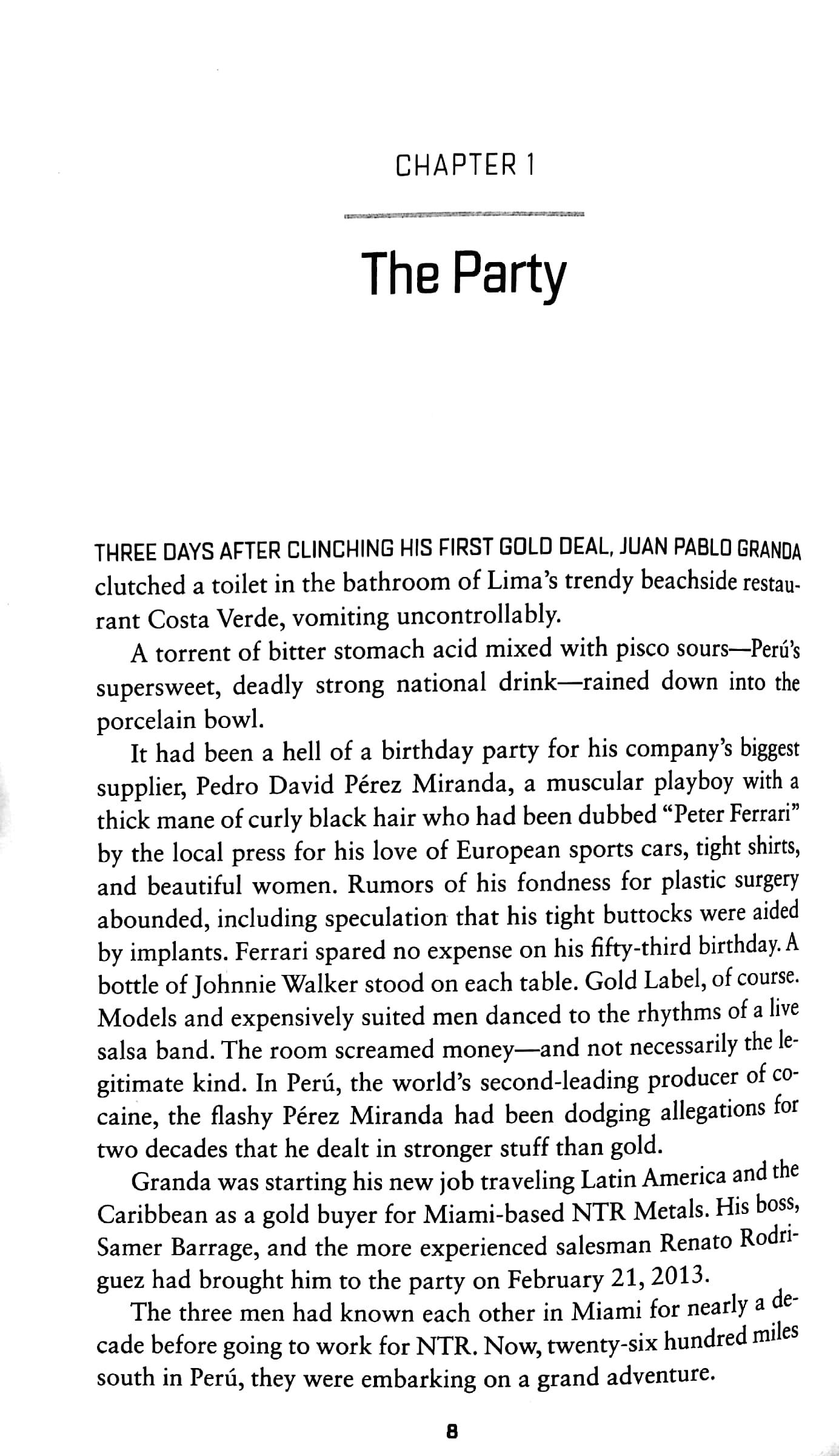 The book follows the meteoric rise and fall of a group of drug traders known as 'the three amigos' who laundered narco money through gold illegally brought into the US and raked in millions before they were caught. Whilst they were making their millions, the humanitarian situation in Colombia, Peru, and many other countries deteriorated dramatically.