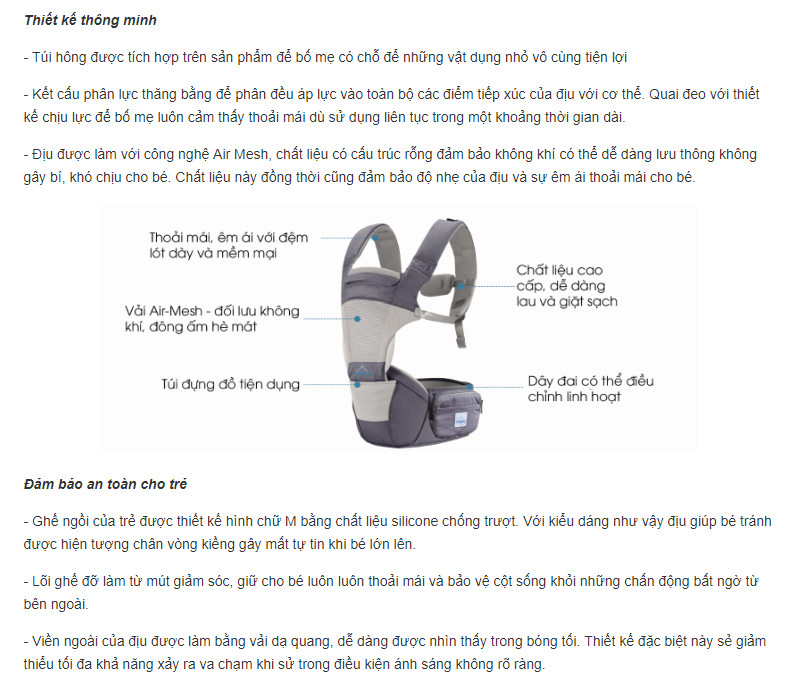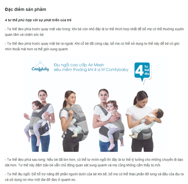 Mua tại TiktokBố mẹ luôn muốn bên cạnh con trong quá trình khôn lớn, muốn giành cho con những trải nghiệm thú vị. Để mẹ có thể rảnh tay chăm sóc bé ngay cả trong những chuyến đi dạo ngắn, sản phẩm địu đã ra đời như một trợ thủ đắc lực. Thuộc phân khúc cao cấp, sản phẩm Địu 4 tư thế Comfybaby hiện đang được nhiều bố mẹ ưa chuộng.
