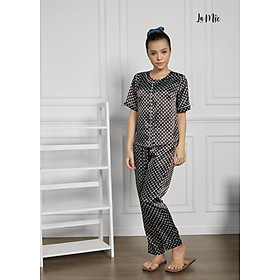 Đồ bộ mặc nhà cổ tròn màu nâu họa tiết chấm bi nhí - LA MỘC chất liệu vải SATIN LỤA. Thiết kế chú trọng từng đường may. Mang lại cảm giác thoải mái cho