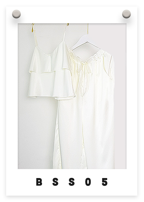 Thương hiệu: Sanny House Tên sản phẩm: Bộ đồ ngủ Chất liệu: lụa cao cấp mềm mịn, co giãn, thấm hút tốt Kiểu dáng: đơn giản, trẻ trung, hiện đại Màu: trắng Size: dưới 60kg