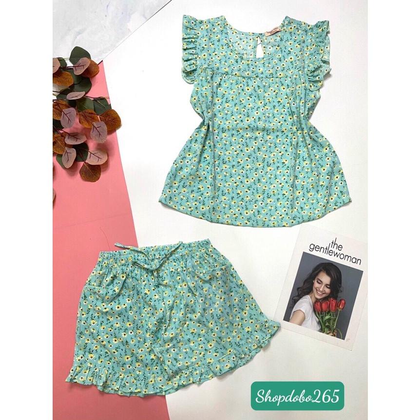 Mua tại TiktokĐồ bộ nữ,đồ ngủ mặc nhà đùi vải lụa mango cao cấp họa tiêt hoa nhí siêu cưng size 45-57kg.