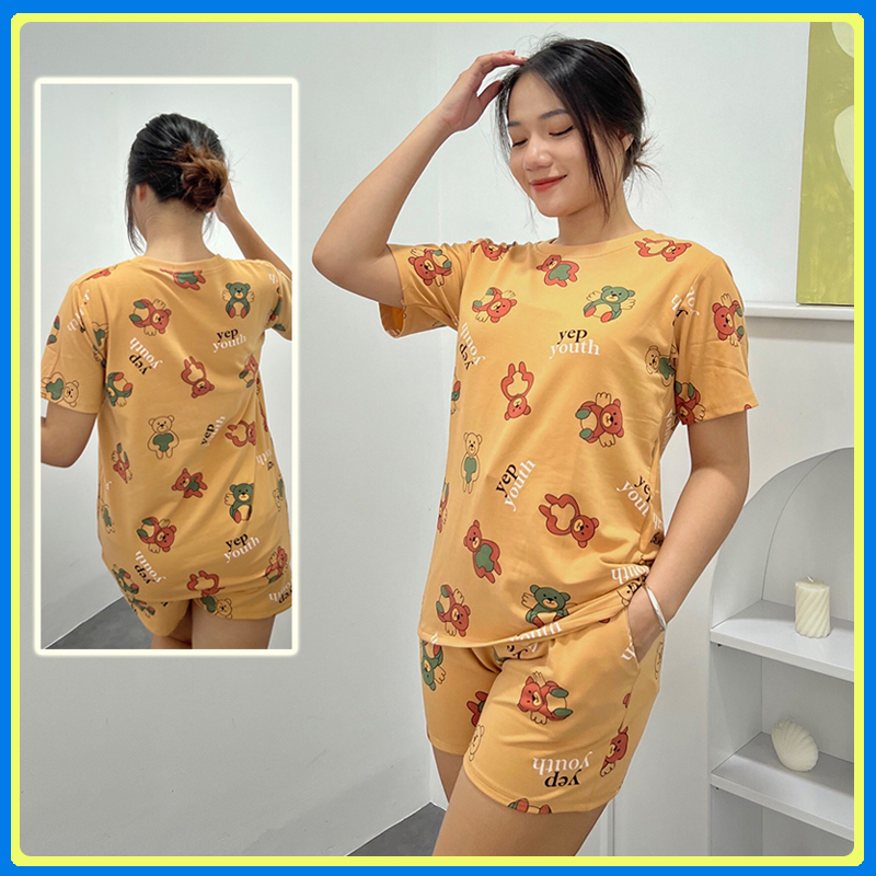 🔰 Bộ nữ mặc nhà quần đùi in gấu - DBO663 📌 #185k ☘ thun cotton, form 40-55kg vừa tùy chiều