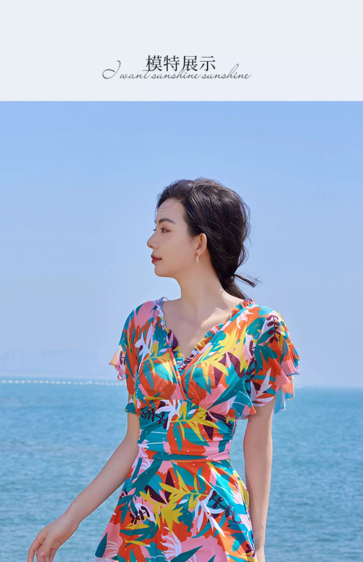 KIỂU DÁNG Màu sắc: Hoa Đồ bơi một mảnh tay ngắn dạng váy kín đáo Kiểu dáng váy có khoá kéo tiện lợi Ngực áo có Mút Mỏng Đường may sản phẩm tỉ mỉ, tinh