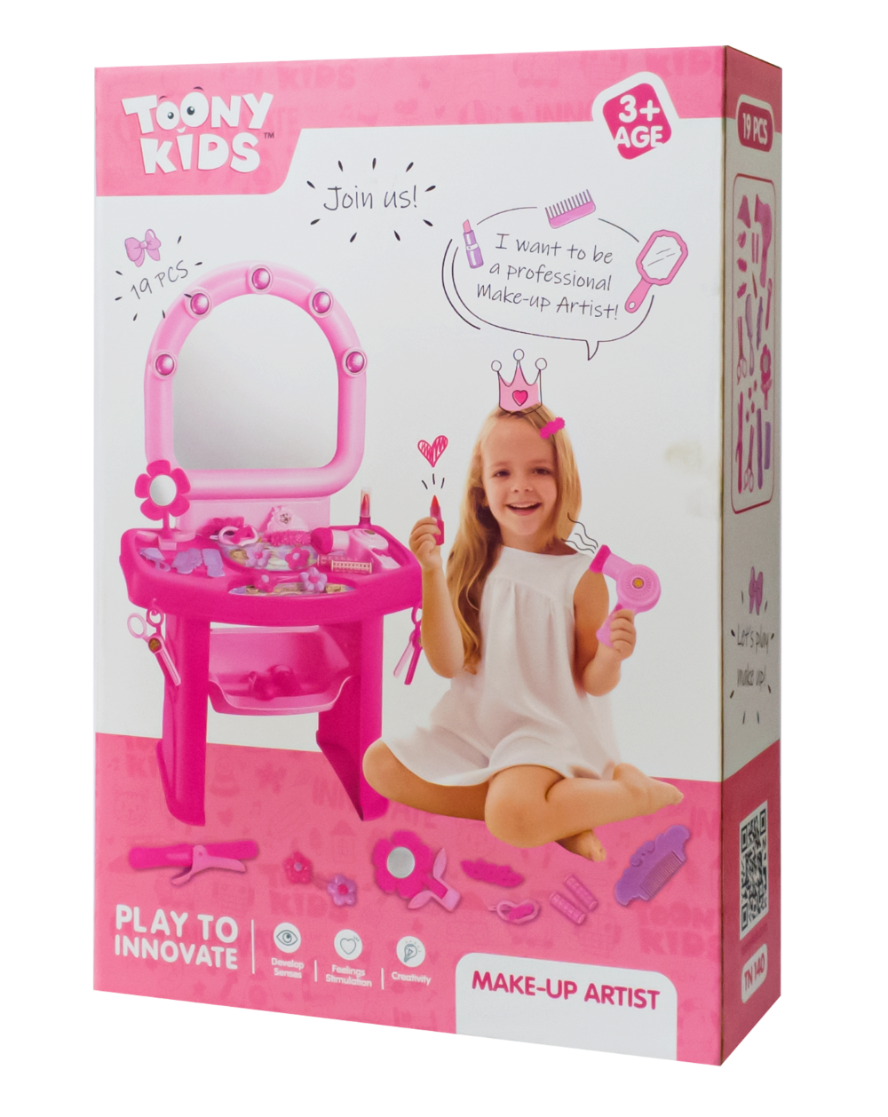 - Bộ bàn trang điểm Toonykids - Makeup Artist là món đồ chơi rất được các bé gái ưa thích, với màu hồng dễ thương cùng họa tiết hoa văn hết sức đáng yêu mang đến sự lộng lẫy cho bé yêu, như một nàng công chúa kiêu kỳ ngồi trang điểm trong thế giới cổ tích.