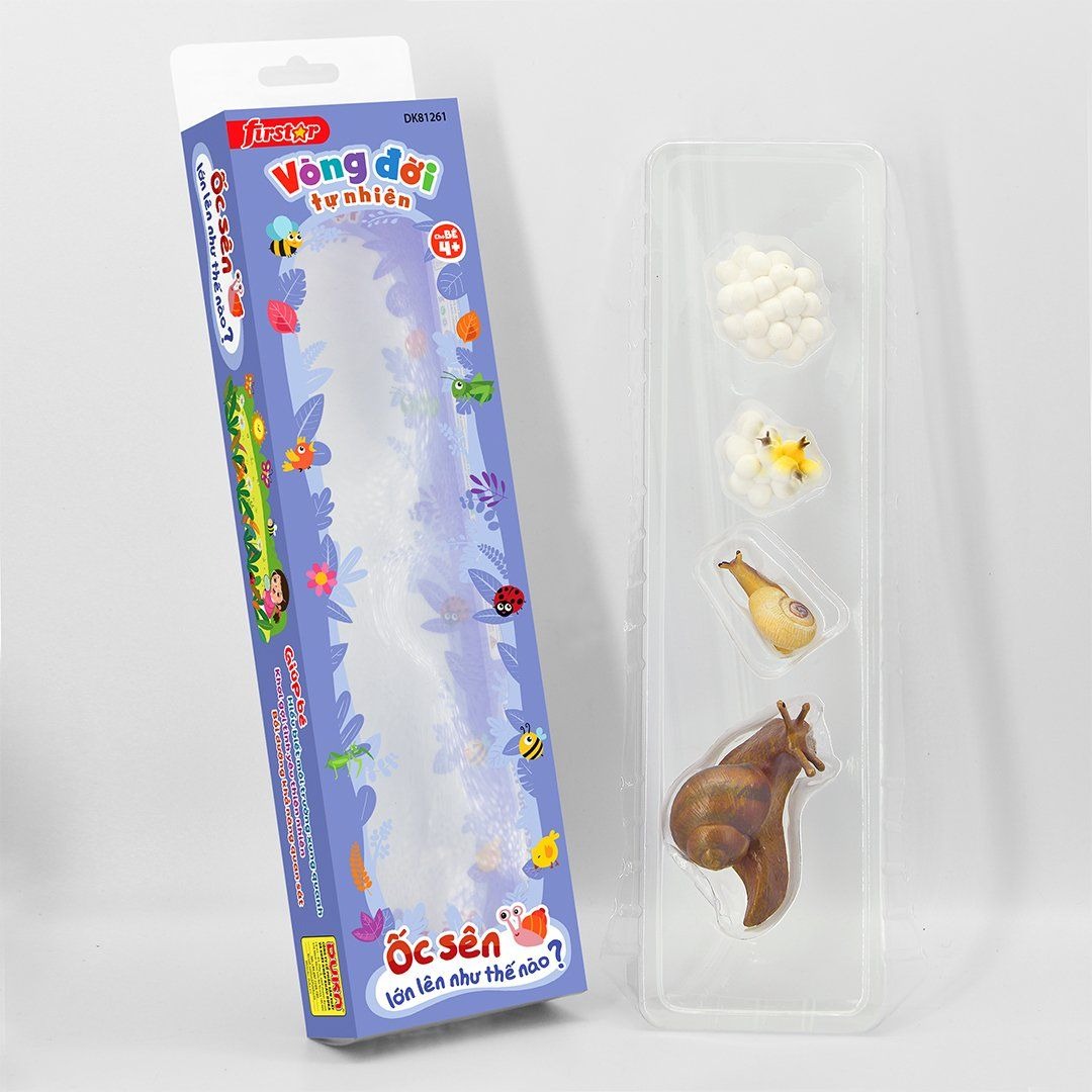 Set mô hình vòng đời tự nhiên của ốc sên trải qua 4 giai đoạn từ :Trứng - ấu trùng- ốc con - ốc trưởng thành. Mô hình nhằm giúp các em nhận biết được vòng đời của các côn trùng trong thế giới động, thực vật đồng thời giúp các em hiểu thêm về qui trình vận động, tiến hóa của thế giới tự nhiên quanh ta.