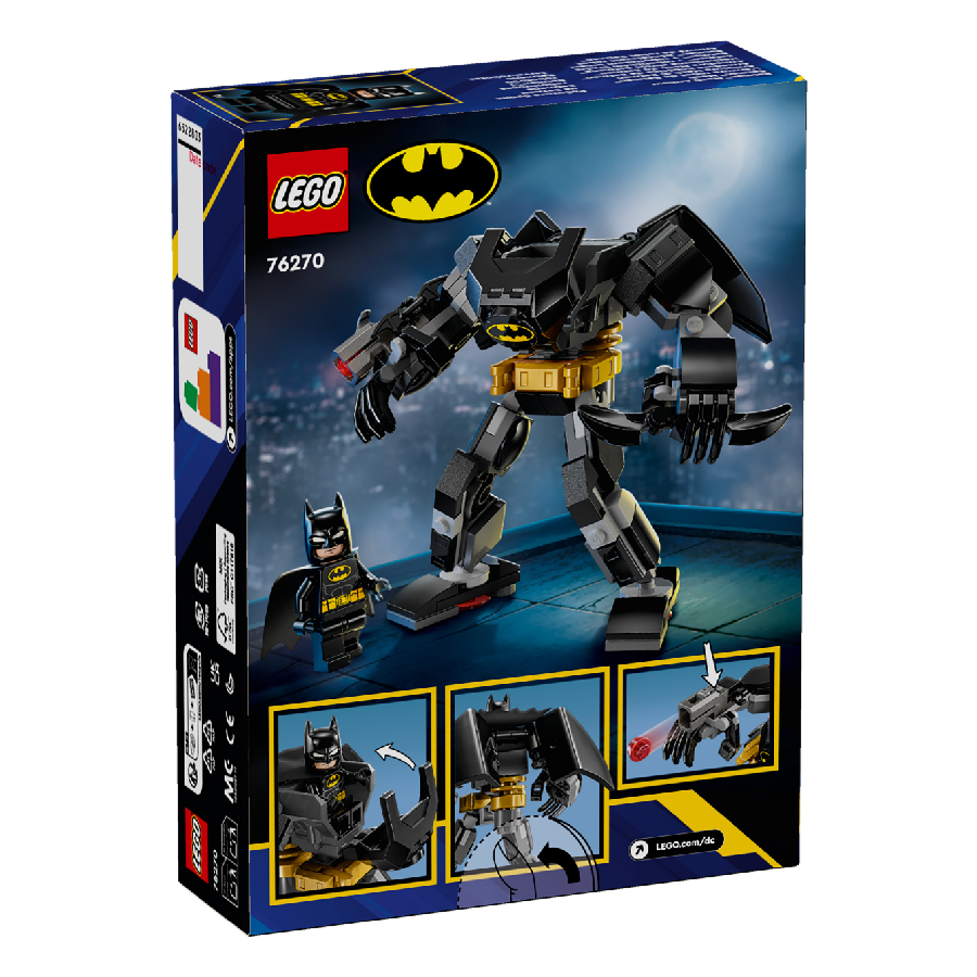 Đặt nhân vật LEGO Người Dơi vào buồng lái mở của chiến giáp, chiến giáp được trang bị một Batarang và khẩu súng trên phần tay, trên lưng được trang bị một động cơ phản lực bao phủ bởi chiếc áo choàng cánh dơi có thể điều chỉnh thành các vị trí khác nhau. Nhân vật minifigure được trang bị một chiếc áo choàng vải và cầm một Batarang khác, có thể được đặt trên cánh tay phải của chiến giáp. Với phần khớp tay và chân của bộ giáp, người hâm mộ Batman có thể tận hưởng những pha hành động chiến đấu gay cấn.