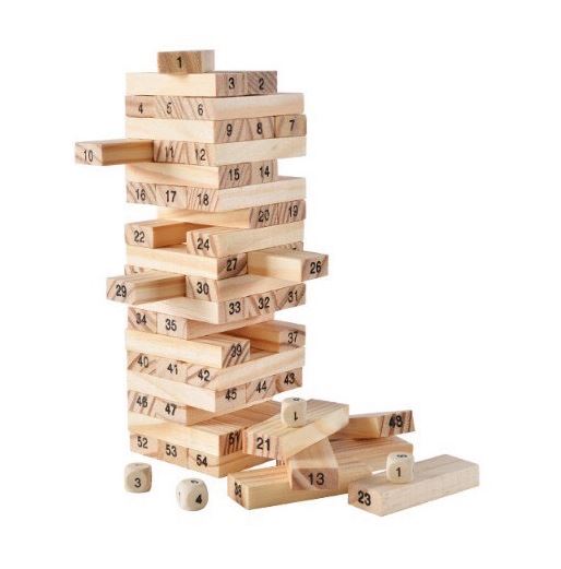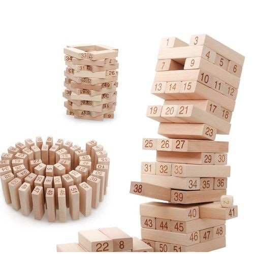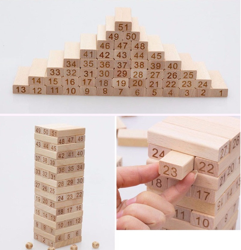 - Rút gỗ Jenga số: Các thanh gỗ được đánh số ở đầu mỗi thanh.