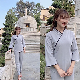 SET ĐỒ LAM ĐI CHÙA ÁO BÀ BA KÈM QUẦN DÀI CHẤT GẤM