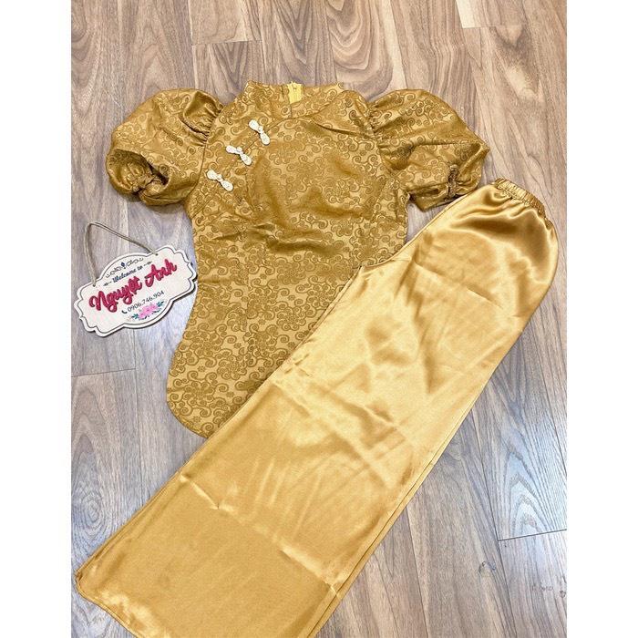 Quần áo phật tử, đồ lam đi chùa mẫu gấm xẻ tà #fashion #quanaophattu