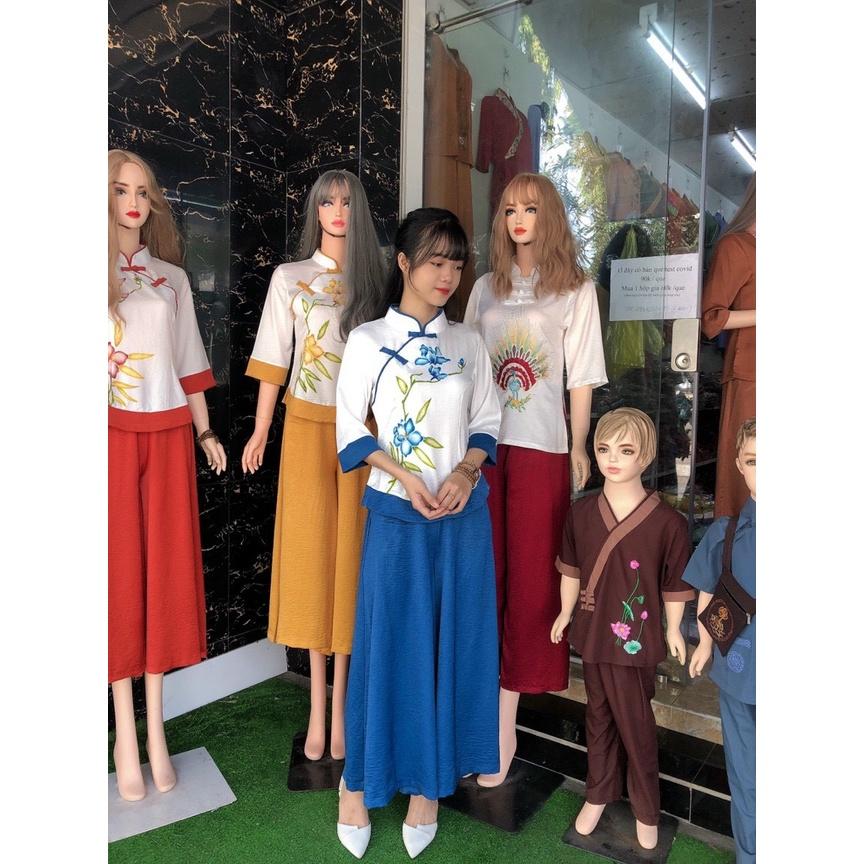Mẫu pháp phục nữ - quần áo Phật tử đi chùa, đồ lam chất kate lụa mềm có co giãn Sen Hồng 0898553583