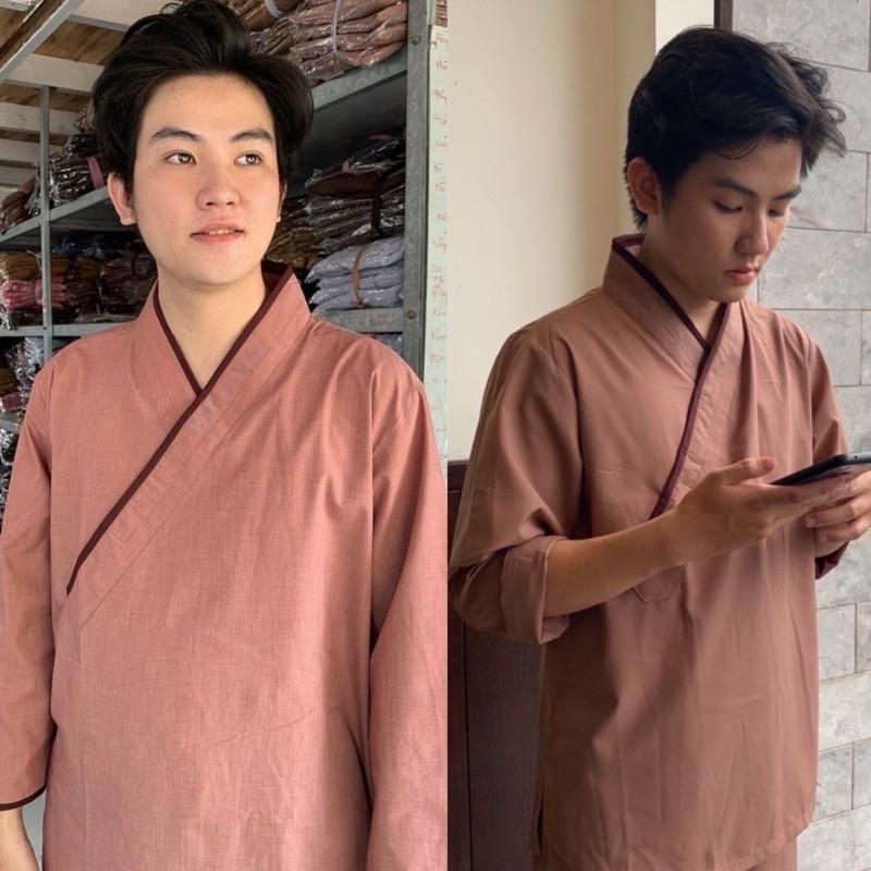 quần áo Phật tử cổ tàu cài chéo - đồ lam đi chùa Sen Hồng - set Phật tử nữ đẹp 0898553583