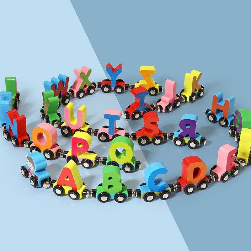 Đồ Chơi Giáo Dục Sớm Đoàn Tàu Nam Châm Chở Chữ Bằng Gỗ Cho Bé
