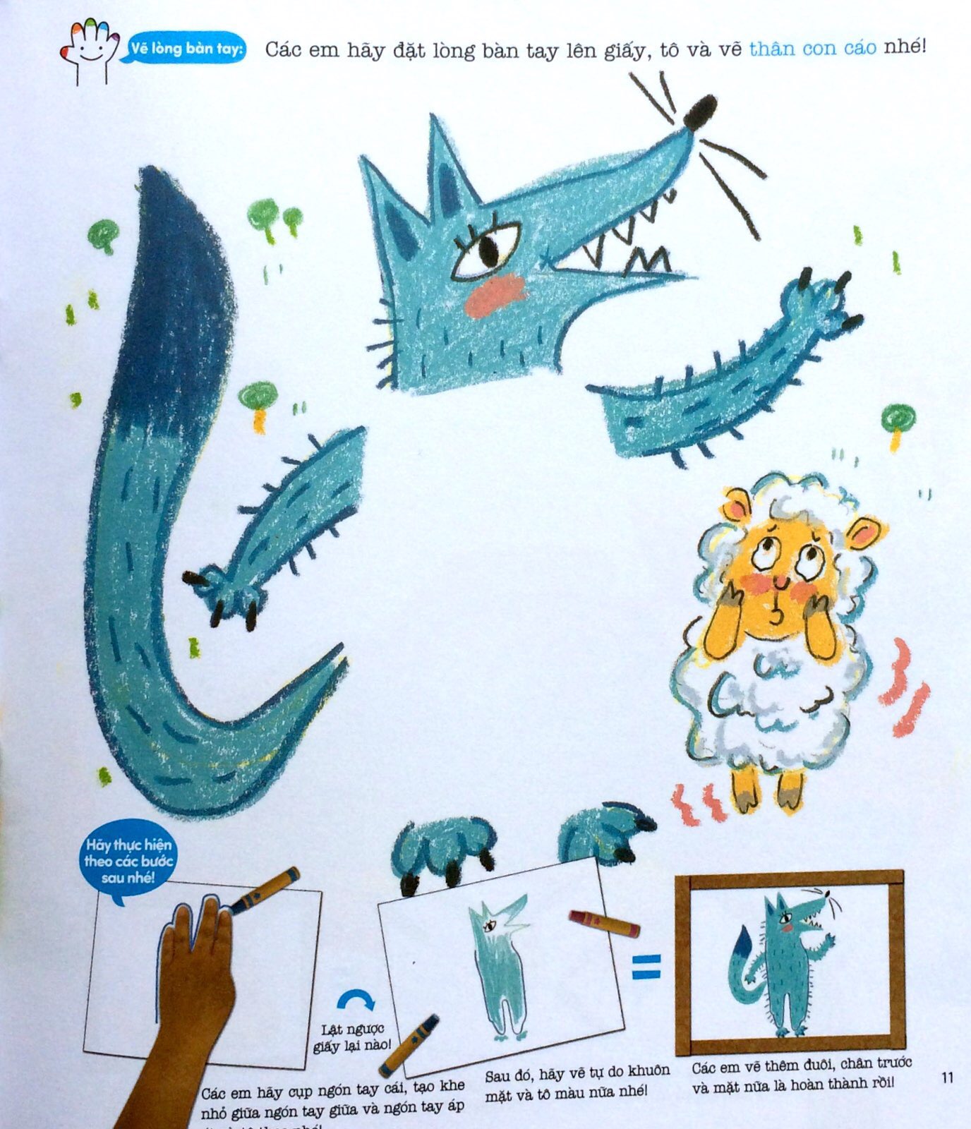 Bộ sách “Đôi tay xinh sáng tạo cả thế giới” đã sáng tạo những trò chơi bằng bàn tay giúp các kỹ năng vận động tinh của bàn tay được vận động tối đa. Trẻ sẽ được trải nghiệm các trò chơi mỹ thuật đa dạng bằng chính các kiểu dáng bàn tay đa dạng của các em như: vẽ lòng bàn tay, đóng dấu bằng tay, đóng dấu bằng nắm đấm, đóng dấu bằng lòng bàn tay, vẽ theo lòng bàn tay, vẽ theo hình bàn tay, vẽ theo hình nắm đấm,…Ngoài ra trẻ sẽ được phát triển năng lực nhận biết sự vật, nuôi dưỡng năng lực phối hợp giữa tay và mắt, phát triển cảm xúc toàn điện và phong phú, nuôi dưỡng trí sáng tạo và trí tưởng tượng, tăng khả năng tập trung và trải nghiệm cảm giác thành công