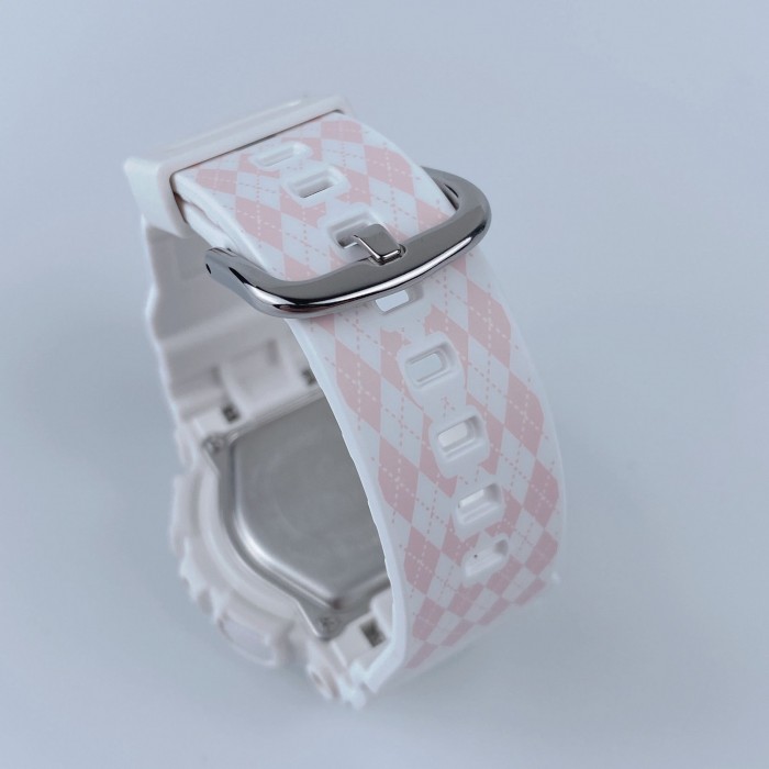 Thỏa mãn vị giác với mẫu đồng hồ BABY-G màu kẹo. Ngoài mặt số kẻ sọc, đường gờ kim loại và vạch chỉ giờ, mẫu thiết kế bọc kẹo này còn tạo thêm điểm nhấn