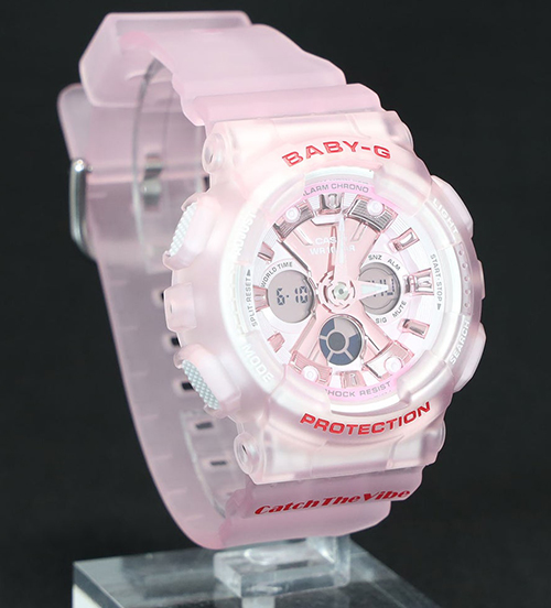 Các tính năng Sở hữu những chiếc đồng hồ lấy cảm hứng từ điệu nhảy hip-hop được thiết kế cùng với RIEHATA. Vũ công và biên đạo nổi tiếng thế giới này mang đến vẻ ngoài hoàn toàn mới cho những chiếc đồng hồ BA-130 này, tạo điểm nhấn độc đáo cho những chiếc vỏ ngoài lớn mang tính biểu tượng. RIEHATA tạo nên sự tương phản giữa thiết kế nam tính bằng các dây đeo màu xanh và hồng bán trong suốt, đồng thời làm tăng nhịp điệu với các điểm nhấn bằng kim loại điện cho mặt đồng hồ. Thông điệp “Catch The Vibe” được in trên dây đeo đồng hồ thể hiện văn hóa hip-hop của thập niên 90 và đầu những năm 2000, gợi lại vẻ đẹp hoài cổ sắc sảo trong một chiếc đồng hồ thực sự đặc biệt. BABY-G sẽ khiến trái tim bạn loạn nhịp và sẵn sàng chuyển sang chế độ nhảy.
