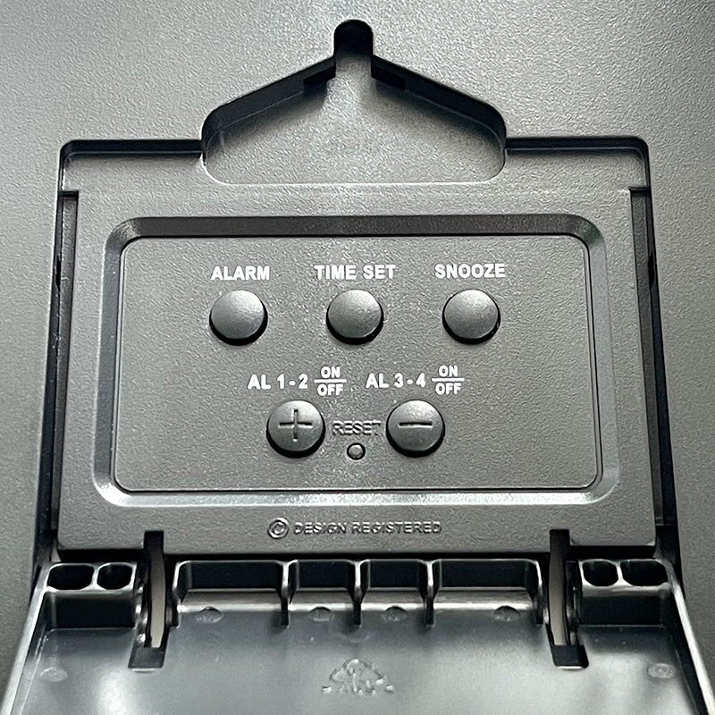 Đồng hồ báo thức Rhythm CRF801NR03 – KT:11.3 x 10.2 x 6.6cm. TRọng lượng 220g Vỏ nhựa. Dùng Pin. 2 chức năng Báo thức tiếng bíp và tiếng chuông reng, có chức năng reo lập