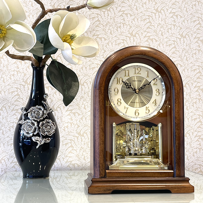 ✨Đồng hồ Để bàn Rhythm CRH240NR06 Kt 22.6 x 31.7 x 12.4cm, Vỏ gỗ. Dùng Pin.