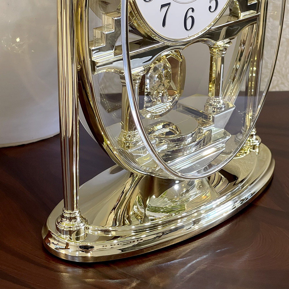 Đồng hồ để bàn Nhật Bản Rhythm 4RP796WS18, dùng pin (AAx2), vỏ nhựa cao cấp mạ vàng kết hợp mica trong suốt nhìn xuyên thấu, Kích thước 14.0 x 22.8 x 8.3cm, trọng lượng 390g. Quả