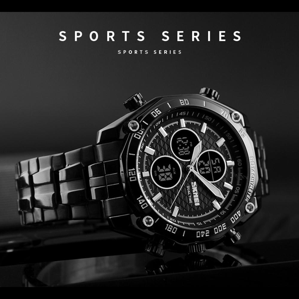 This is a fashion men watch. The man wristwatch has 2 time chrono display, week, and backlight functions. It shows your unique style.