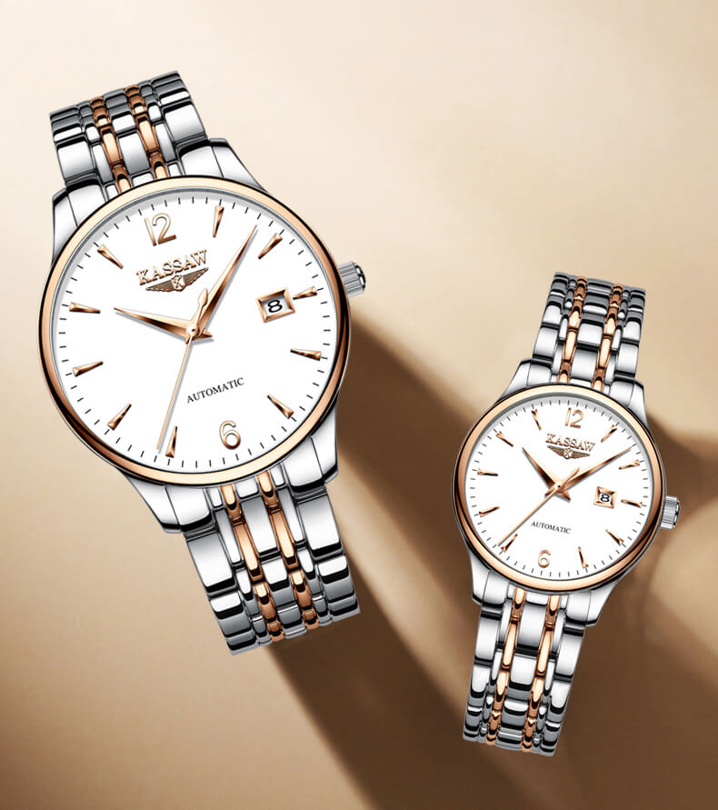 Đồng hồ đôi chính hãng Kassaw Thụy Sỹ Thiết kế sang trọng, đẳng cấp Thời gian trữ cót lâu lên đến 40h Chống nước 5ATM, Kính sapphire nguyên khối chống xước Toàn bộ máy