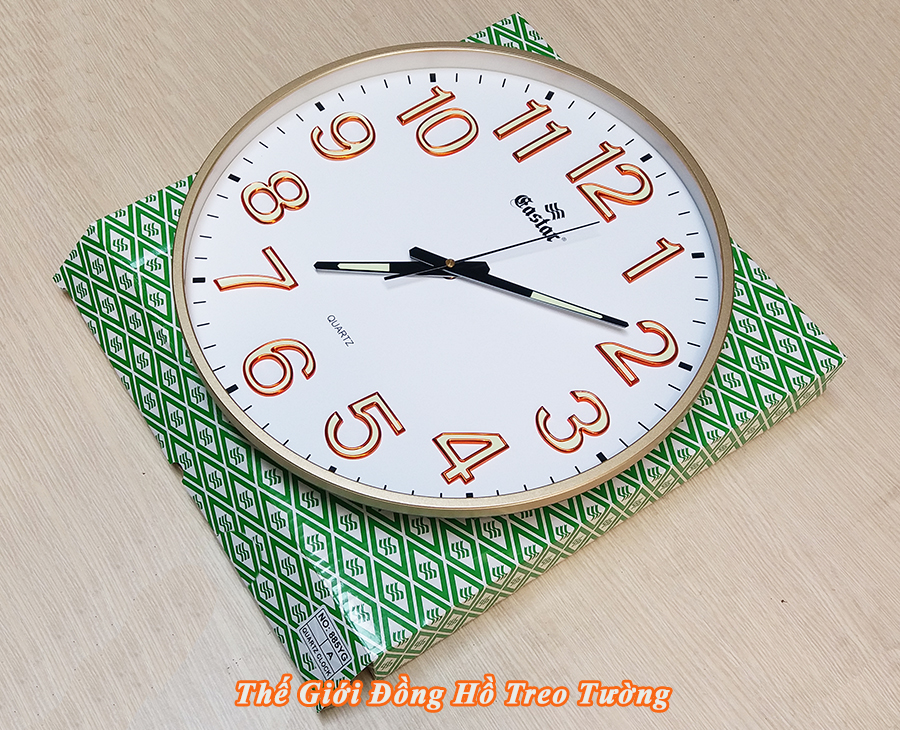 Đồng hồ Treo Tường KIM TRÔI DẠ QUANG EASTAR Mặt ĐEN Kim VÀNG - Số nổi 3D - 885B