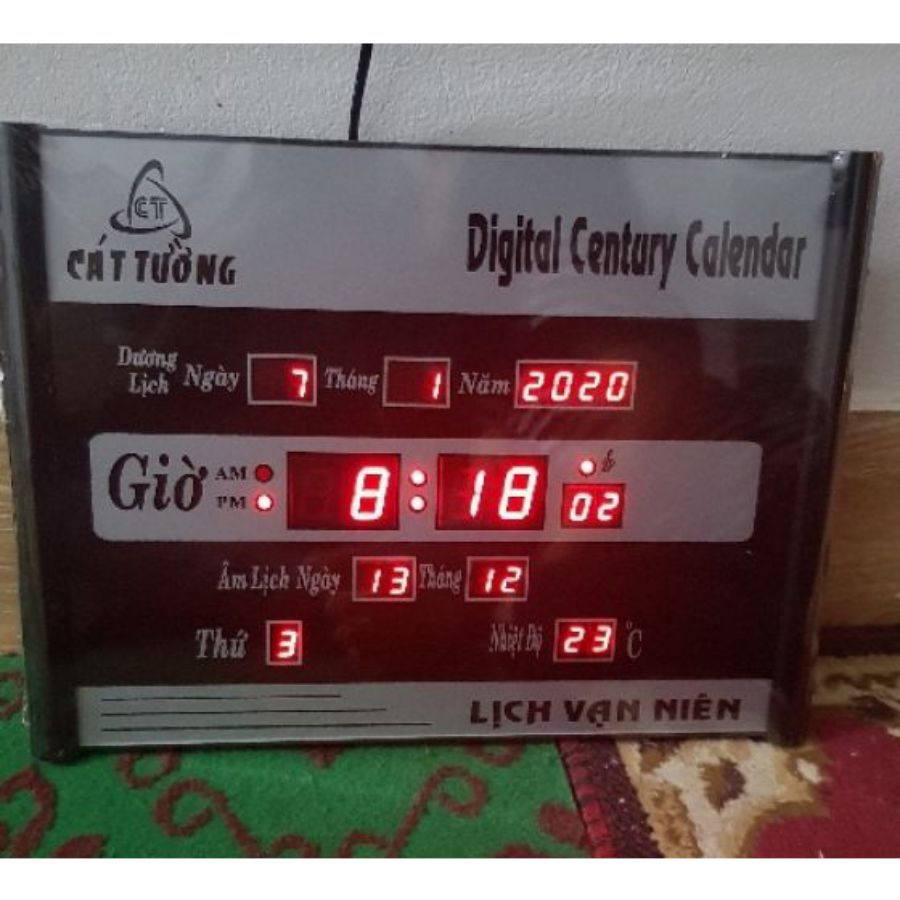 Đồng hồ treo tường Thông Tin Sản Phẩm Lịch Vạn Niên Cát Tường 3A sở hữu led điện tử sử dụng điện cùng kích thước nhỏ gọn đơn giản nhưng vẫn hiển thị đầy đủ