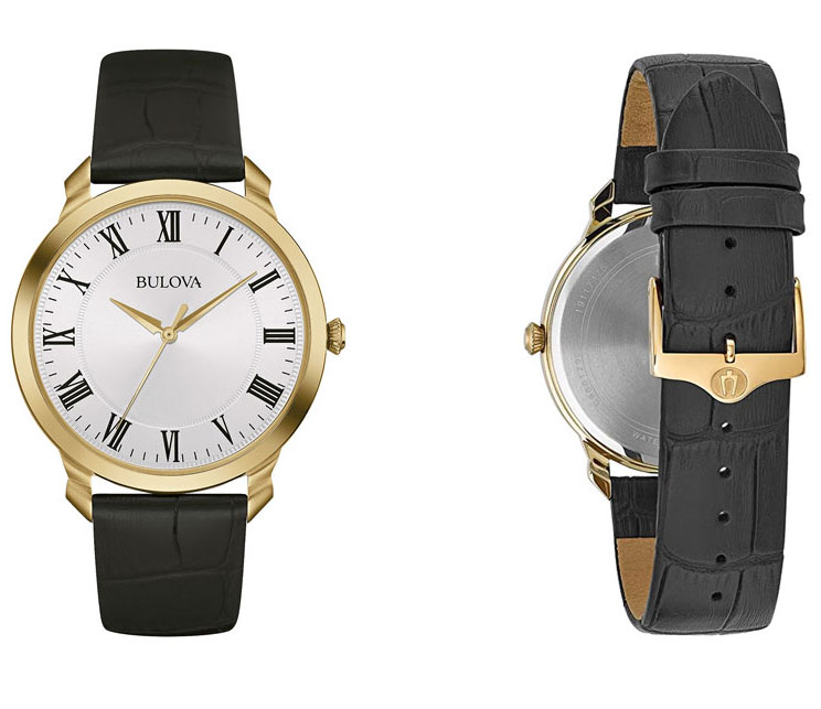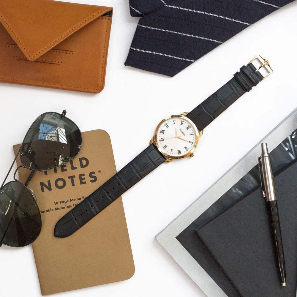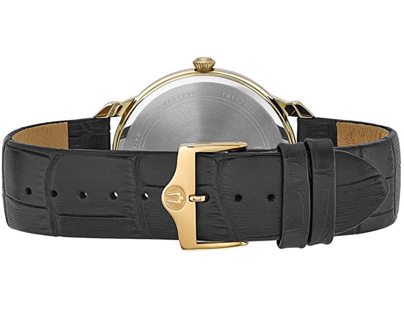 • Dây da đen được dập vân cá sấu chất liệu cao cấp chính hãng Bulova.