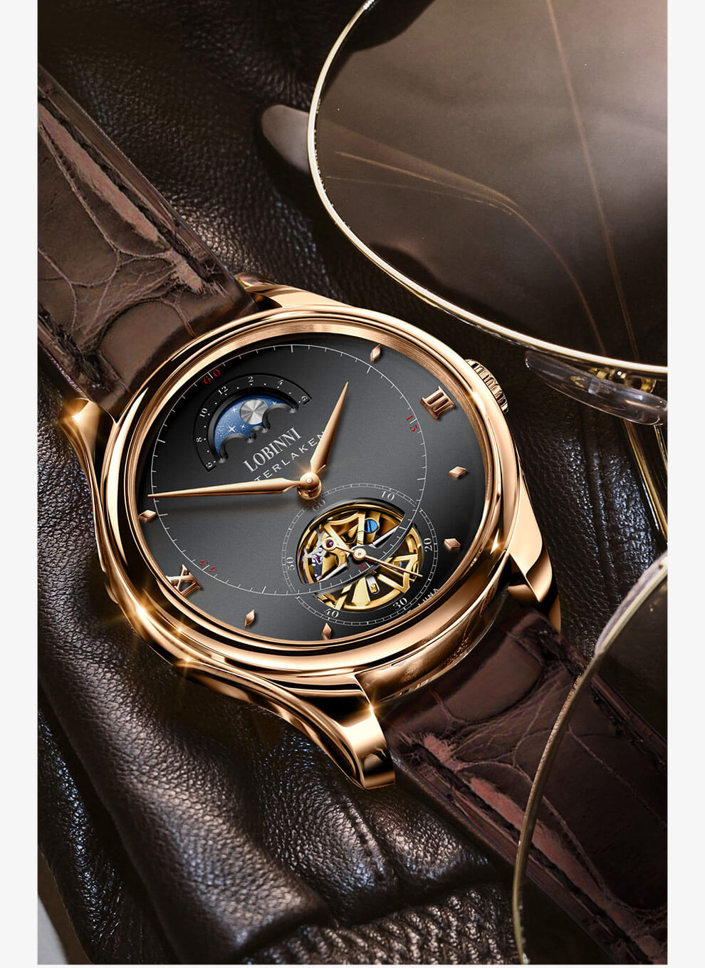 Đồng hồ nam chính hãng LOBINNI Thụy Sỹ Thiết kế sang trọng, đẳng cấp cho quý ông Thời gian trữ cót lâu lên đến 40h Chống nước 5ATM, Kính sapphire Toàn bộ máy được làm
