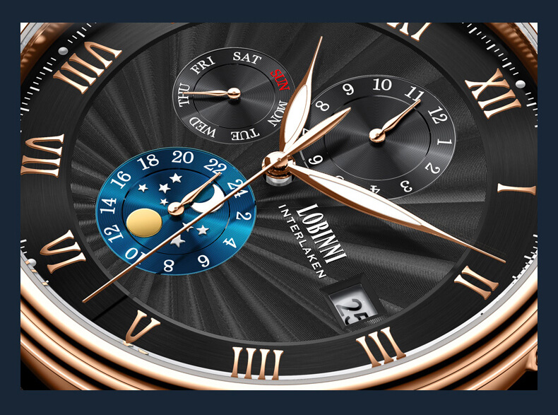 Đồng hồ nam chính hãng LOBINNI Thụy Sỹ Thiết kế sang trọng, đẳng cấp cho quý ông Thời gian trữ cót lâu lên đến 40h Chống nước 5ATM, Kính sapphire Toàn bộ máy được làm