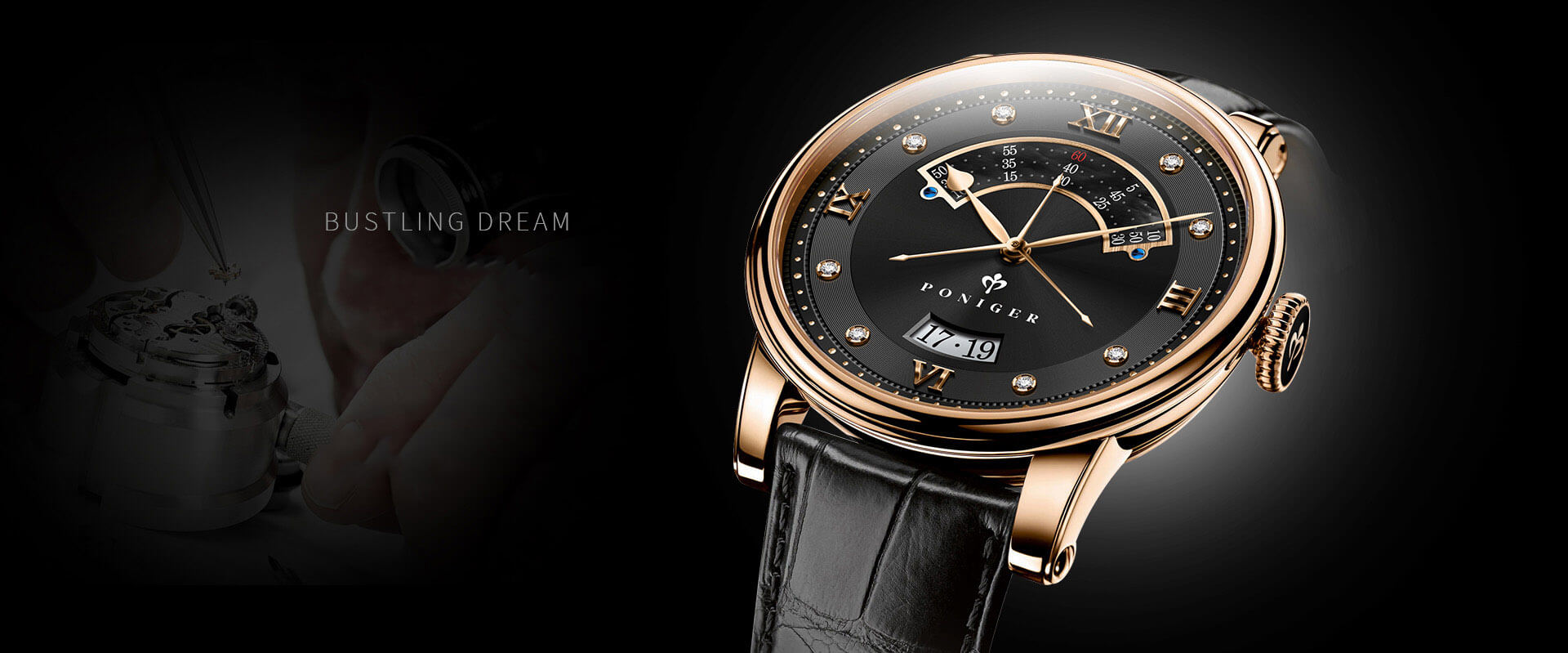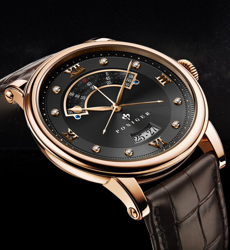 Đồng hồ Thụy Sĩ luôn mang lại cho người dùng một khoái cảm đặc biệt về cả diện mạo lẫn chất lượng. Như chiếc Poniger này, đẳng cấp thể hiện qua dòng chữ "SWISS MADE" được in trên mặt số. Bên cạnh đó còn là: