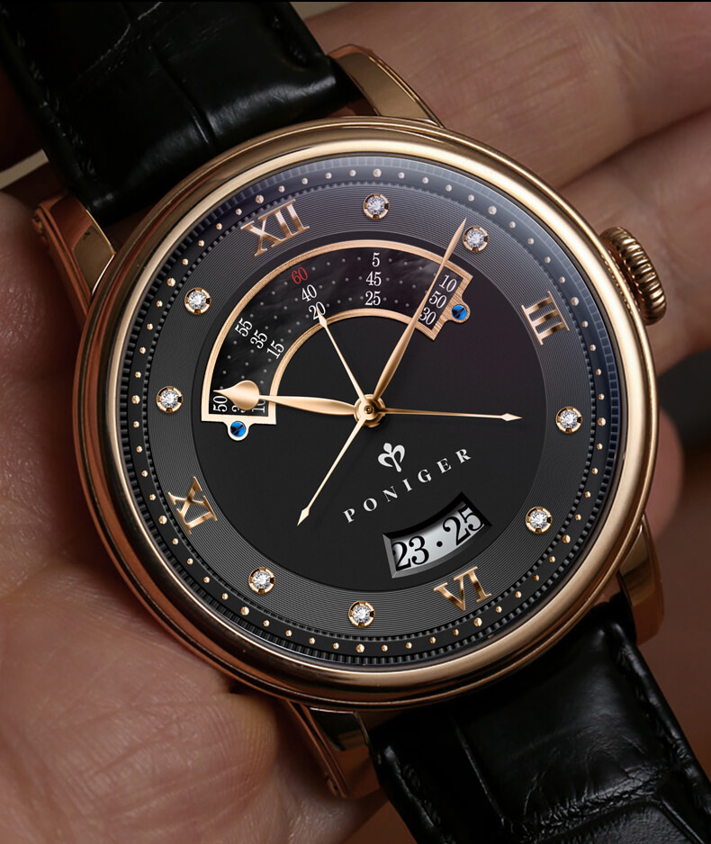 THIẾT KẾ TÁO BẠO: 5 kim thường xuất hiện trên đồng hồ thể thao thì nay đã được Poniger đưa vào cỗ máy thanh lịch với những đường nét thanh thoát hơn, tiết chế hơn và sắc sảo hơn.