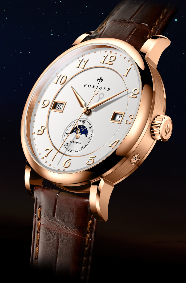 Đồng hồ nam chính hãng Poniger Thụy Sỹ Thiết kế sang trọng, đẳng cấp cho quý ông Thời gian trữ cót lâu lên đến 40h Chống nước 5ATM, Kính sapphire Toàn bộ máy được làm