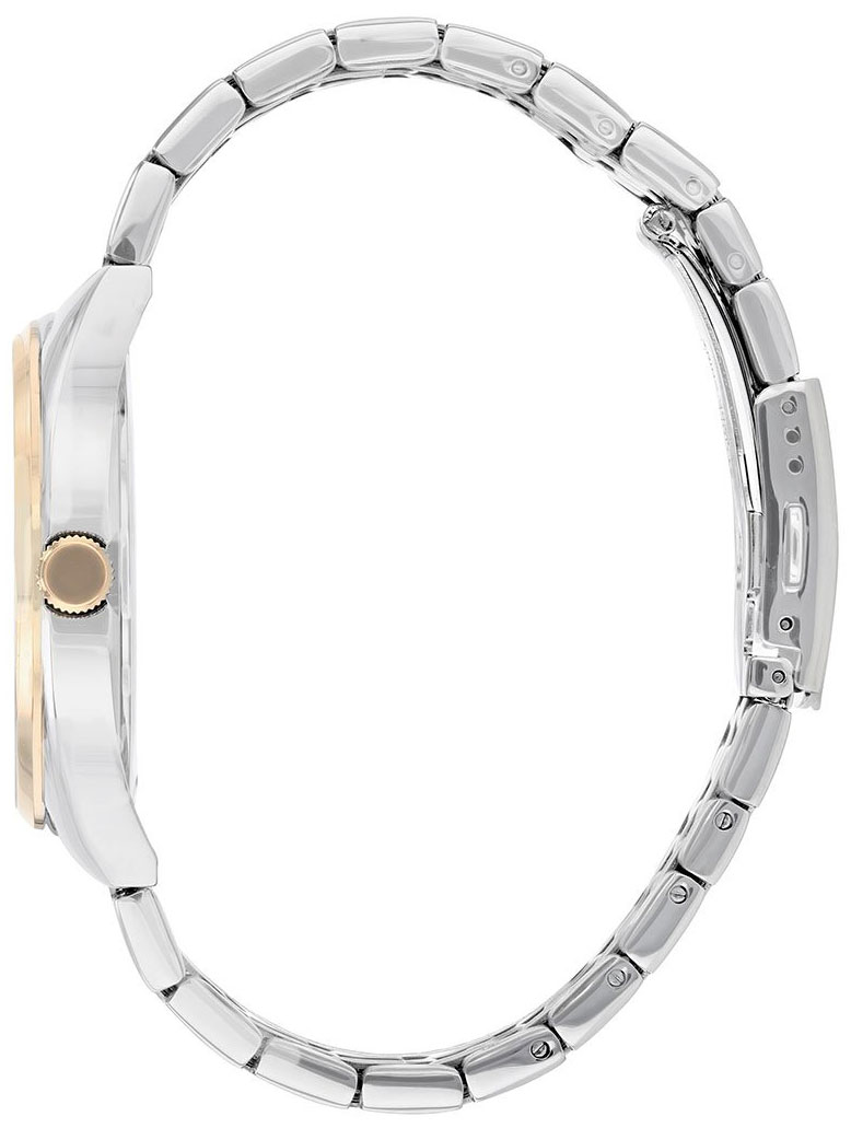 Đặc điểm kỹ thuật - - Vật liệu vỏ / gờ: Mạ ion - Chốt gập 3 chỉ với một lần bấm - Dây đeo bằng thép không gỉ - Mặt kính khoáng - Khả